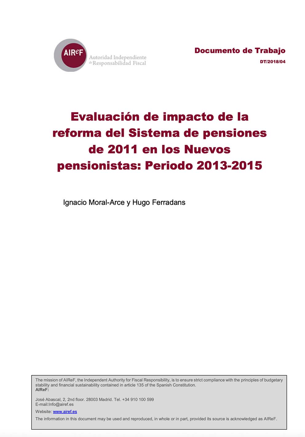 El presente documento muestra un análisis realizado a partir de estimaciones a nivel microeconómico, con el objetivo de medir el impacto que tuvo la reforma del sistema de pensiones del año 2011, teniendo en cuenta un intervalo de tiempo comprendido entre los años 2013 y 2015.