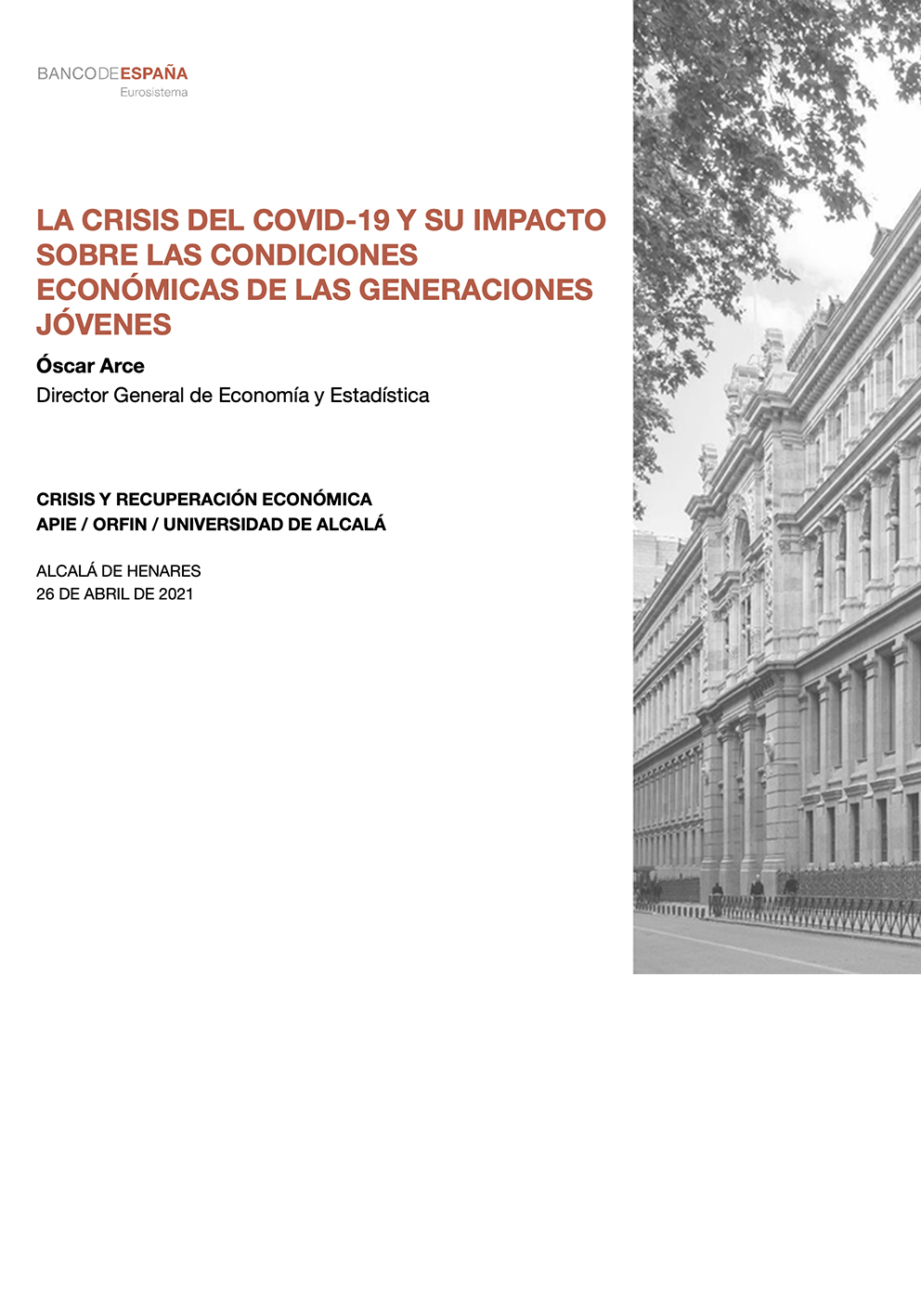 En esta presentación realizada por, Oscar Arce, entonces Director General de Economía y Estadística del Banco de España, hoy mismo cargo en el Banco Central Europeo (BCE) en la Universidad de Alcalá en la que analiza el impacto de la crisis del Covid-19 en las condiciones económicas de las generaciones jóvenes analizando diferentes factores como educación, renta, condiciones laborales, reto medioambiental, etc.